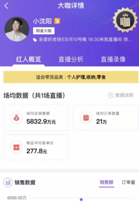▲小沈阳直播数据