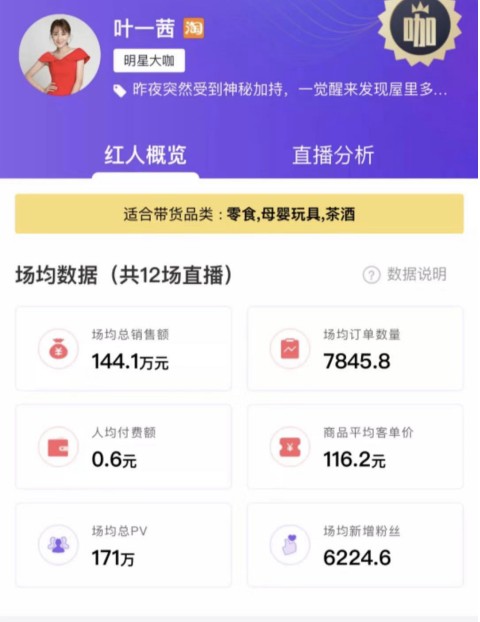▲叶一茜直播数据
