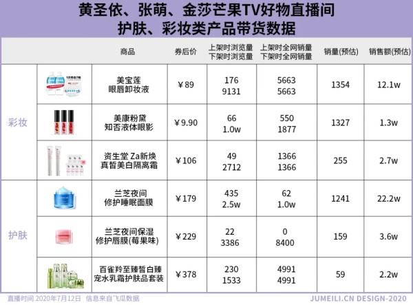 与“姐姐”全网独家官方直播间相比,与薇娅李佳琦等头部网红合作的效果明显要好于姐姐们单独直播。