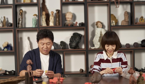 与黄渤一同做雕塑