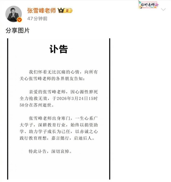 张雪峰:人生真好玩,下辈子还来公司证实张雪峰病逝,生前乐观探讨死亡:人生真好玩,下辈子还来