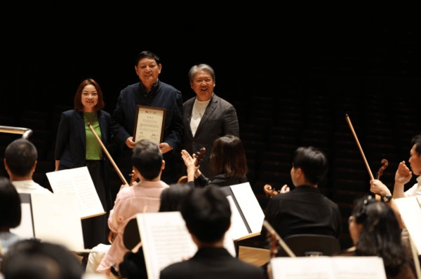 在新加坡,上海交响乐团授予张振山“终身荣誉艺术家”