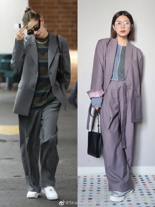 西服套装出现在很多欧美明星街拍里,通常以舒适简约的althflow风为主,但是他们都是高挑大骨架,但运用到小个子穿搭里还是需要有一些调整,毕竟我的先天条件不好