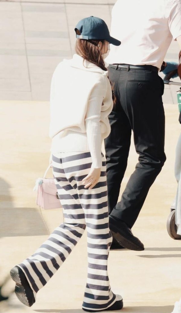 这次赵露思穿着一身白色的连帽针织毛衣外套,下面的裤子则是和她的蓝色鸭舌帽相呼应,搭配了一条白蓝色的长裤。但是如果是腿粗不占优势的姐妹们建议不要轻易尝试,因为横条纹的裤子穿起来很容易显胖,但是对于这条裤子不得不说,如果能够驾驭的话,还是设计感十足的!