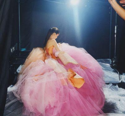 即使是大伙儿都在中秋节放假,baby也穿着一身漂亮的粉纱晚装,坐在影棚里加班,虽然是拍摄的相片,并没有所有的姿态,不过是坐在那边看手机的画面中baby也像是小公主。