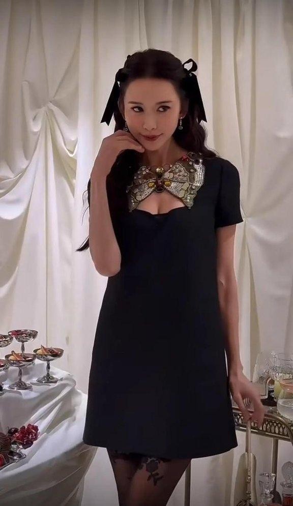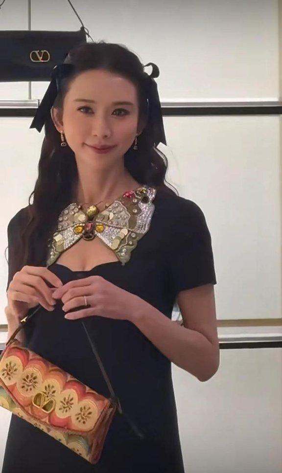 说回这两位女星的最近一次红毯表现。林志玲这次是在上海参加某国际品牌的线下活动。她穿了一条黑色低胸蝴蝶结连衣裙,显然是想走性感优雅的路子。裙摆短到大腿根,胸前又有一个夸张的彩色蝴蝶结,配合她一贯的温柔微笑和优雅气质,刚一亮相确实引来不少赞叹。但仔细看下去,整个造型却又显得有点割裂。首先,裙子本身的设计就很复杂,性感与可爱元素混在一起,既要秀身材又想装俏皮,结果让人有点摸不着头脑。