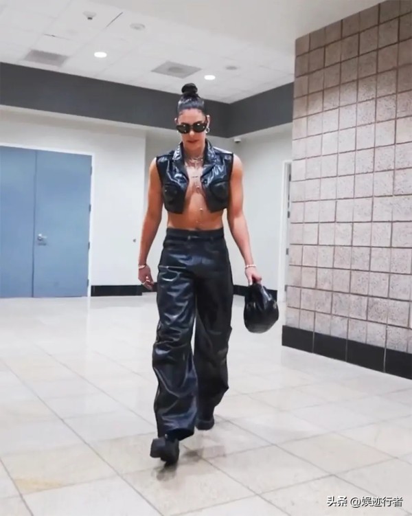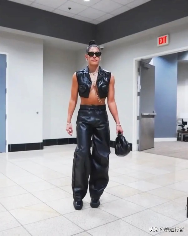 凯尔西·普拉姆在拉斯维加斯王牌队赛季揭幕战前,以一身大胆的全套装束吸引了所有人的目光。这位29岁的WNBA明星上身穿着一件无袖皮革短背心,内搭空无一物,完美展示了她的腹肌。她的下装则是一条低腰皮裤,裤腰处饰有精致的钩针细节。