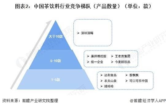 茶饮料行业依据茶饮料布局数量划分可分为3个梯队,其中深圳深晖以11款茶饮料产品的布局处于第一梯队,但由于深圳深晖属于中型茶饮料企业,其知名度相较于第二梯队的康师傅控股和统一企业的产品低,因此,市场占有率较低。第二梯队的企业主要为康师傅控股、王老吉集团、统一企业、今麦郎饮品等市场占有率较高的茶饮料生产企业。第三梯队为达利食品、农夫山泉、香飘飘、娃哈哈、可口可乐中国等企业。