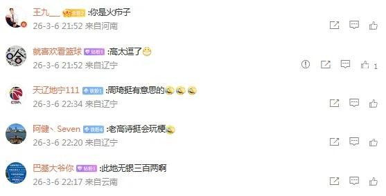 北京时间3月6日,CBA全明星周末,北区明星队全体合照的时间段,周琦姗姗来迟未能站好位置,高诗岩发出“死亡”调侃为“脓包”。