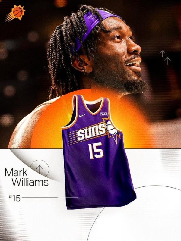 直播吧7月27日讯 太阳官方宣布,球队新援中锋马克-威廉姆斯新赛季将穿15号球衣。