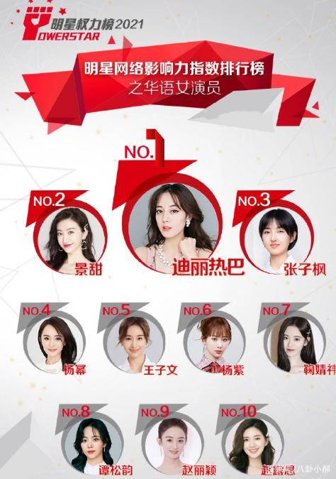2021女明星权力榜,赵露思第十,第一名雷打不动