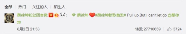 其中,名为“蔡徐坤粉丝团官微”创造了转发超2771万次点赞却只有3724次的记录,转发是评论的7441倍。
