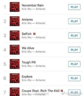 奇怪,“Mr_吴亦凡工作室”在写“创造华人歌手新纪录!首张专辑《Antares》上线不到五小时,登美国iTunes四榜单TOP1!”这句文案的时候几斤几两自己心里没点数吗?