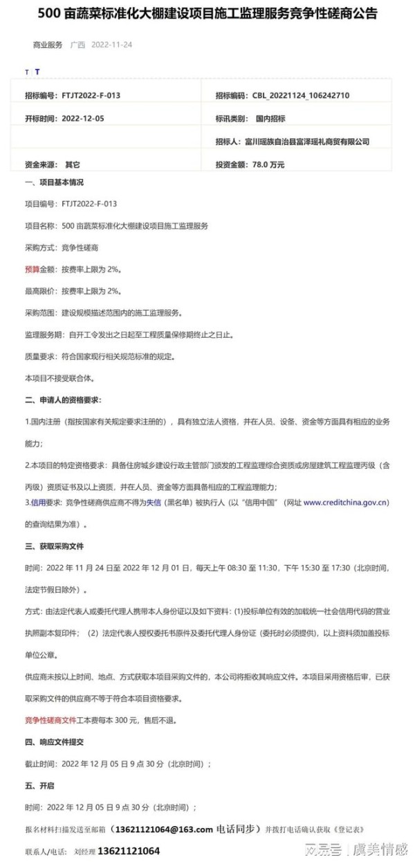 网址:=500亩蔬菜标准化大棚建设项目施工监理服务竞争性磋商公告 https://m.mxgxt.com/news/view/2063480