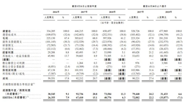 根据更新的招股说明书,2017年新东方在线的营收为4.46亿元,净利润为9220万元;2018年营收虽有增长至6.51亿元,但净利润减少至8200万元;2018年6月-11月新东方在线营收4.78亿元,同比增长45.42%,净利润3620万元,但和17年同期的9020万元相比下降59.87%。这些数据都说明新东方在线的赚钱能力在缩水。营收呈放大之势,但同时各项开支也不断放大。