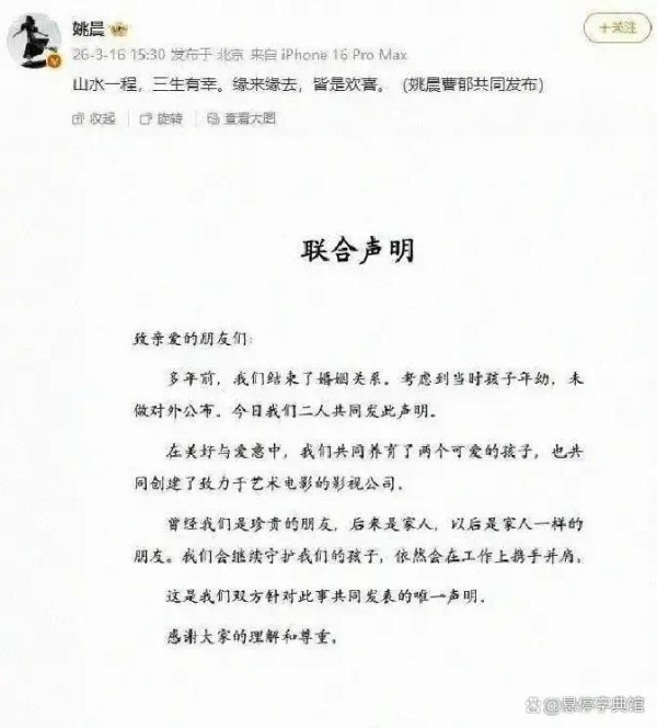 姚晨的声明,无论你怎么看,至少她试图做的是“体面地结束”。可互联网不懂体面,它只关心冲突与点击。也许我们该慢一点,去想想:当“官宣”成了一种全民娱乐,我们是不是正在用情绪替代理解?