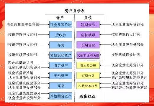 损益表、资产负债表和现金流量表之间的相互影响构成了企业财务模型的核心。具体来说,资产负债表中的现金部分数据来源于现金流量表,同时,借款部分则取自现金流量表的筹资活动部分。