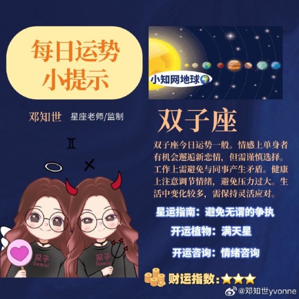 【#小知网星座#每日星运小提示】