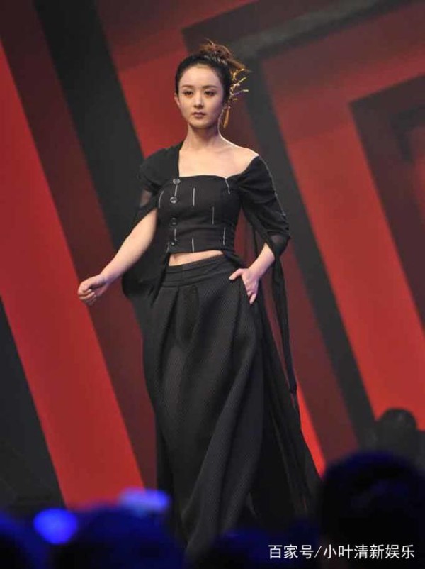 2、赵丽颖。综艺节目《偶像来了》中赵丽颖也是首次穿着黑色裙子走模特步,举手投足之间透着女王范。