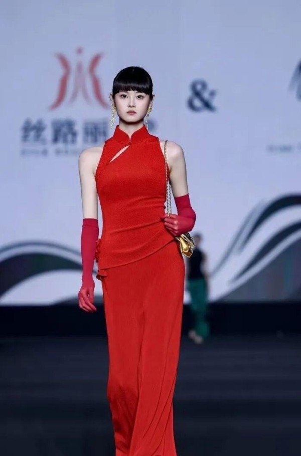 入选名单公布后,当看到自己的名字时,金欣迪蹲在地上激动落泪。2026年3月21日,她身着大红色旗袍风格定制礼服站在时装周T台,从台口到台前的30秒,是她三年来无数个清晨与深夜的坚持,是从淮河边到聚光灯下的逐梦之路。
