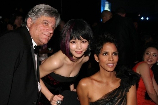 紫色亮片长裙配以短发的徐若瑄令人耳目一新成为全场引人瞩目的亮丽焦点。当晚,vivian遇到很多好朋友,许久未与晓明见面,两人一落座便聊个不停。也非常开心有外宾至远方来。语言能力强的vivian与哈里-贝瑞及她的经纪人相谈甚欢。结束前三人开心留影。