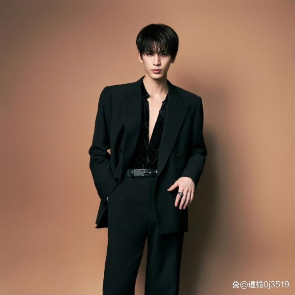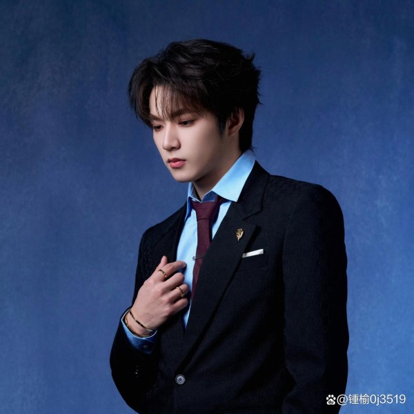 一切始于红毯环节。肖战身着一袭深蓝色丝质亮片西装,内搭黑色衬衫,佩戴精致项链,半坐于黑白毛绒地面上,目光坚定望向镜头。灯光下,这套由哑光金属面料手工缝制的礼服泛起“星河流转”般的光泽,与他在红毯上的另一套紫色西装(获YSL全球独家认领)形成罕见的竞品同步认领奇观。然而,真正让时尚圈炸裂的,是内场环节——Gucci为肖战特别打造的深蓝色亮片专属定制西装,不仅在设计上与其他六位明星的高级成衣形成鲜明区隔,更在发布节奏上体现了品牌的“独宠”。