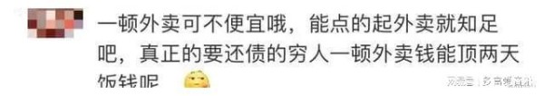 然而不少网友却不买他的账,表示都这么穷了还能点的起外卖,说明还是有钱的!