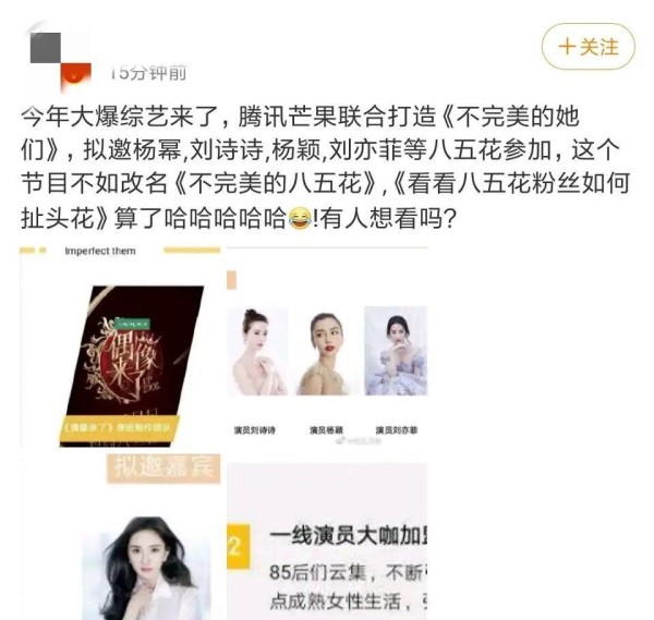 爆料85花可能集体参加《不完美的她们》?又名“不完美的85花”?