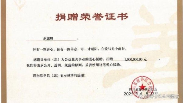 在聚光灯下闪耀的明星们,一举一动都备受瞩目。近日,青年演员赵露思向四川慈善联合总会捐赠100万元的消息,如同一束温暖的光,照亮了乡村教育的发展之路,也引发了大众对明星社会责任的深入思考。