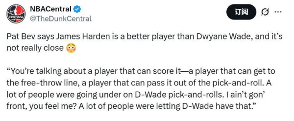 “我完全理解大家争论的焦点。确实,韦德曾获得过总冠军,我也是芝加哥人,当然非常喜欢韦德,彼此关系也相当不错。但是,单纯从球员的个人技术层面来看,尤其是得分手段、制造罚球及挡拆后的传球能力,哈登要更胜一筹。当年很多防守韦德挡拆的人选择让他投篮,而不是被他渗透突破,这其实是一种策略,但也反映了两人的不同特点。”