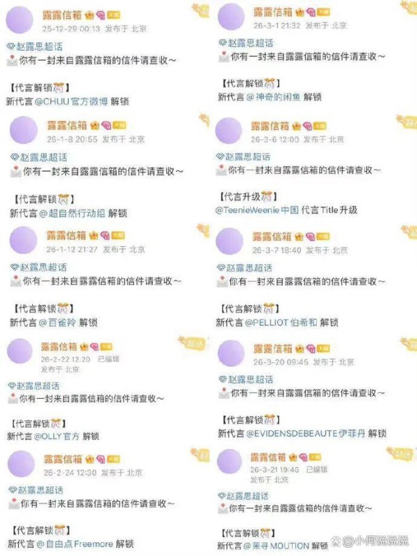 2026年第一季度尚未结束,赵露思已经有10个高质量代言官宣及预热。