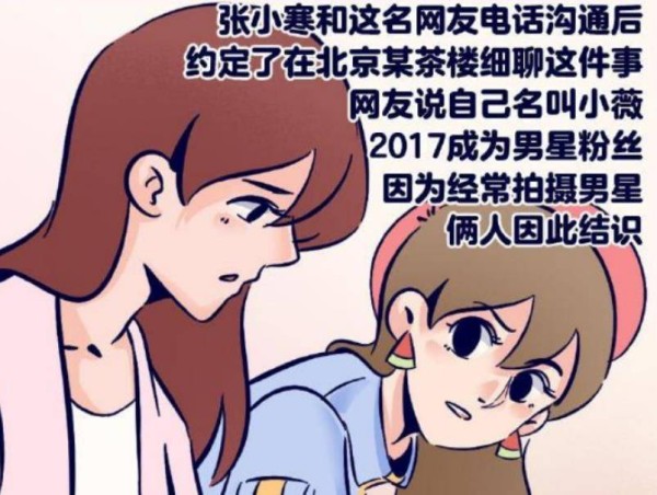 而近期,张小寒漫画又更新了,她接受到了一个网友的投稿。这个网友就是漫画里面的主人公,故事是这样的: 女粉丝因为经常拍摄男明星而因此结识,后来男明星跟圈内的女明星传出绯闻,男明星认为跟圈内的女明星谈恋爱太麻烦了,分手之后就跟这一位女粉丝在一起。两人相处了两年,女粉丝会经常去男明星工作的地方找他。但是男明星在两年之后就突然玩消失了,冷暴力处理了这一段感情。