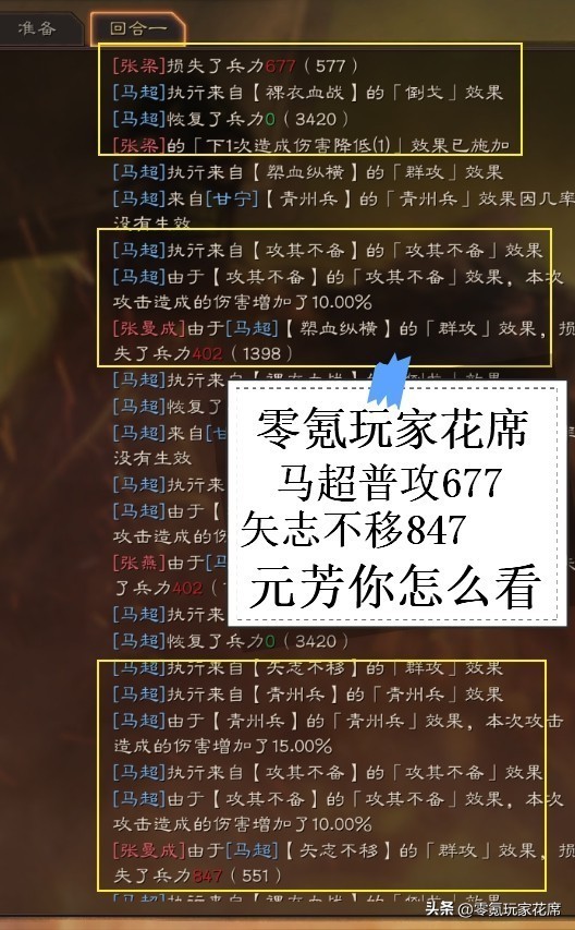 如果不受增伤,就是677伤害,结果受到早期青州兵和攻其不备的共同影响,变成了847伤害。