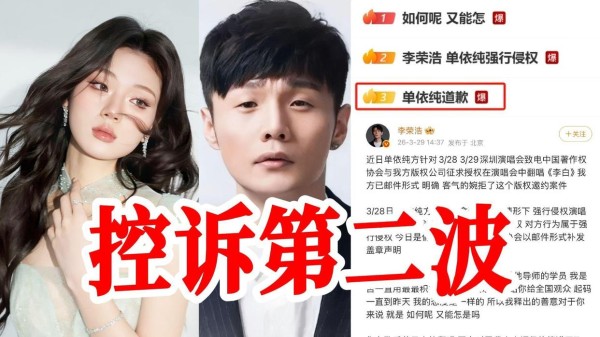 乐坛里的风云变幻从来不需要什么预热,有时候一个简单的动作就能在平静的水面上砸出一个巨大的深坑。二零二六年的三月末,这春意正浓的时候,娱乐圈却爆出了一个让人怎么也绕不开的版权纠纷大案。一边是被称为音乐才子的李荣浩,另一边则是被大众寄予厚望的实力女嗓单依纯,原本风马牛不相及的两个人,因为一首家喻户晓的《李白》,在二零二六年三月二十九日这天,彻底站到了舆论的天平两端。