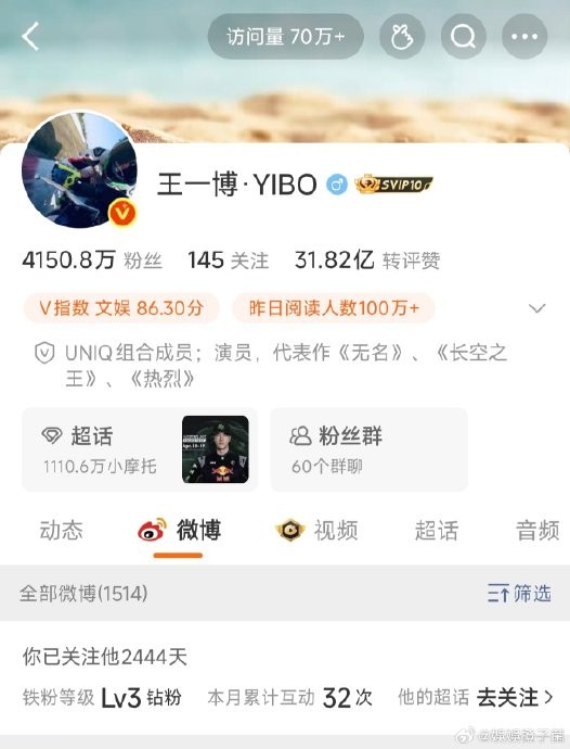 2026年3月27日,王一博将微博昵称从沿用多年的“UNIQ-王一博”更改为“王一博·YIBO”,同时移除认证信息中的“UNIQ组合成员”标签。这一看似细微的举动,在粉丝和业内掀起轩然大波,被视为其职业身份转型的关键标志。
