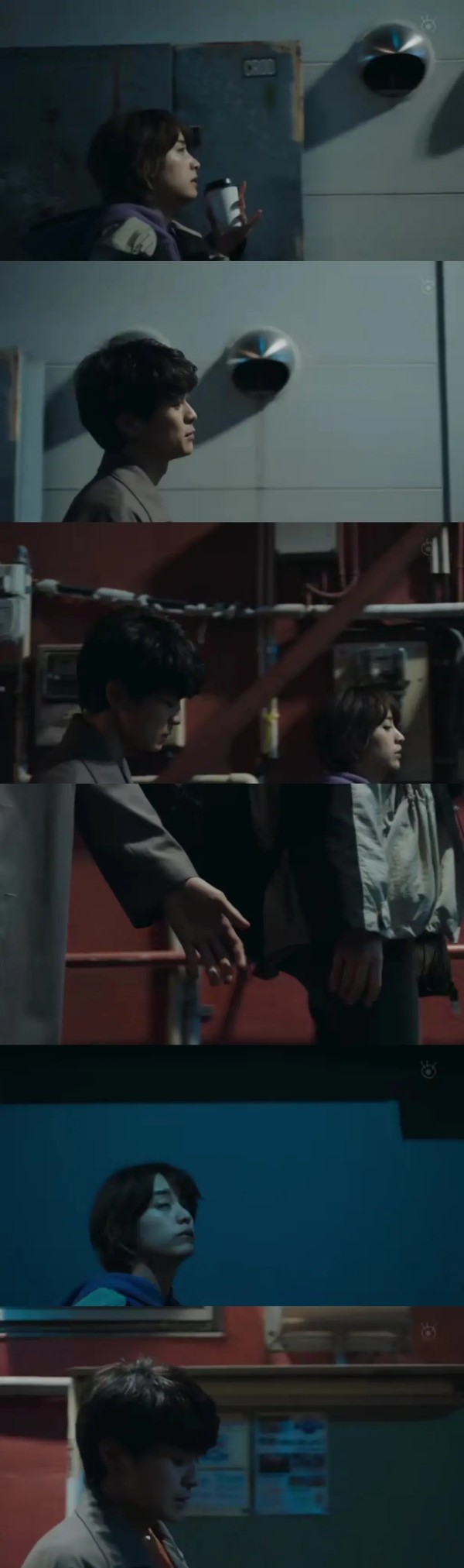 先是两人两个框,再同框,男主想牵手碰巧女主转身,两人再分框