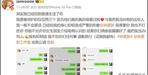 事情最初源于司晓迪公开喊话林更新,指责对方将自己当作消遣对象,并晒出多段对话截图——拜年、约饭、邀约去北京,细节繁杂,甚至暗示还藏有更劲爆内容未披露。网友对此争论不休,有人认为不过是普通朋友间交流,但司晓迪却强调“要是都曝光就过界了”,让猜测变得扑朔迷离。林更新方面并未正面回应,仅表示已取证并委托律师处理,同时祝司晓迪身体健康。部分粉丝不买账,质问为何不直接起诉,还翻出其狗头像与赵丽颖“cp”传闻,试图寻找蛛丝马迹。