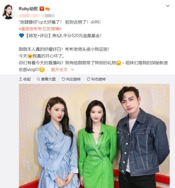 坚信许多小伙伴们都了解幼熙这名美女网红,这名美女网红的人气值十分高,是由于著名的美妆达人,沒有想起此次可以和景甜张彬彬一起合照,因此 粉丝全是十分兴奋。
