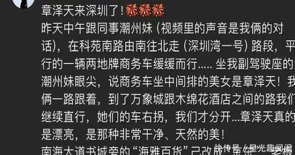 不久前,有网友在深圳偶遇章泽天。