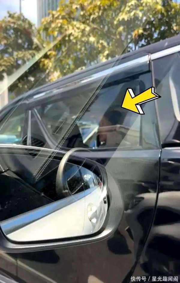 她乘坐在一辆商务车内,车窗未贴膜,可以清晰地看到她的容貌。