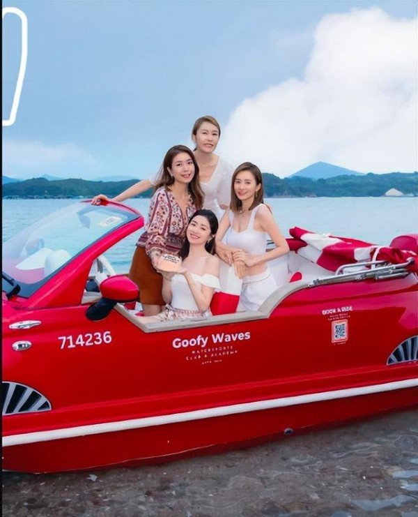 从照片来看,这次庆生明显走的是写意又不失排场的路线。几位好友登上一艘红色跑车造型游艇,在海上开生日派对,蛋糕、水果、美酒一样不少,画面一看就知道花了心思。