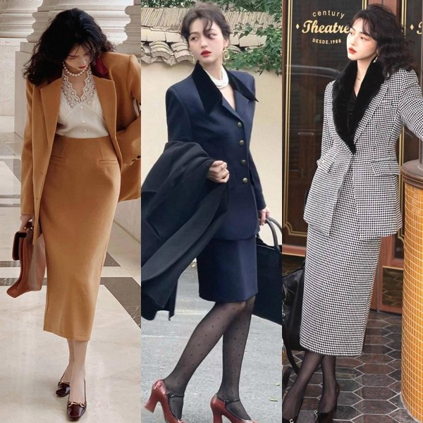 :带有收腰设计或可搭配腰带的X型马甲能有效制造曲线感,避免过于平板直筒的版型,可通过内搭与下装的色彩对比来塑造层次。