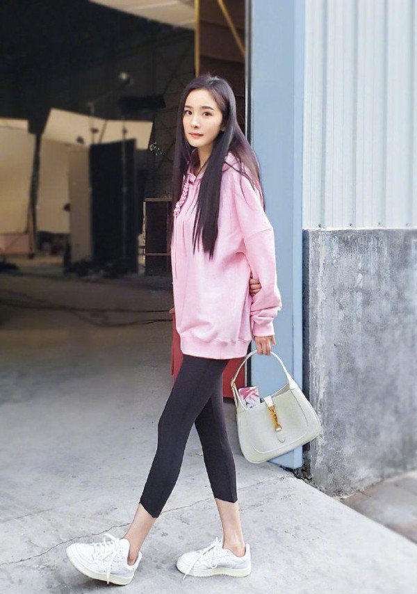同样拥有漫画腿的杨幂,也是选择了卫衣配小黑裤的穿法,就这么随意一穿,造型看起来很随性又显身材,关键是好好看,所以穿衣搭配就尽量把自己的优点展现出来。
