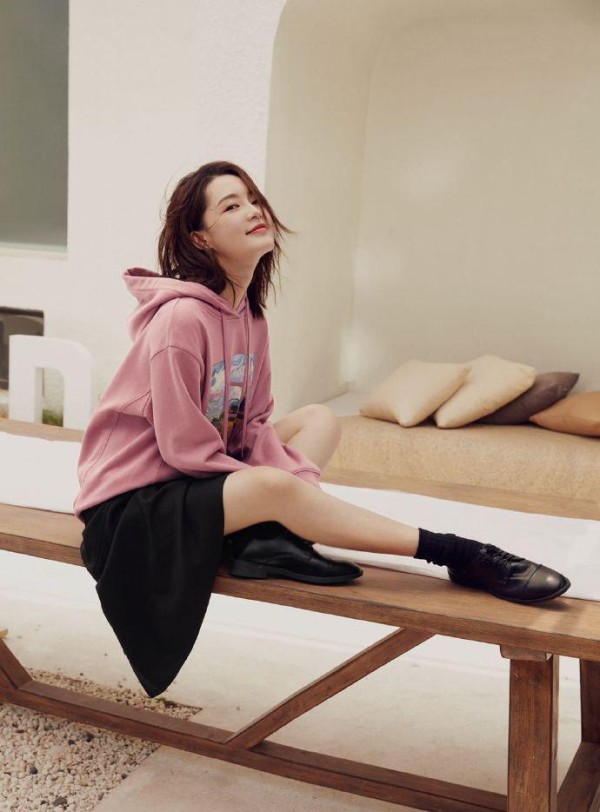 卫衣本来就是比较中性的衣服,不管你是喜欢什么风格,它都可以满足你,如果你想要更甜美淑女一些的话,建议还是学李沁这么穿卫衣,配一条自己喜欢的短裙,就可以轻松将你女人味一面展现出来。