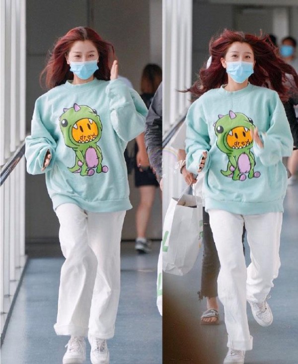 虞书欣最近的热度就一直高涨不下,她的那种“小作”实属是让人喜欢得不要不要的,好可爱的样子,连穿衣都这么的可爱,难怪大家都喜欢她,这件是恐龙图案的卫衣,搭配白色的直筒裤之后,显得造型很清爽了,还巨显白。