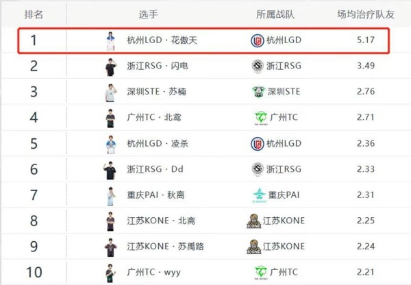 在昨天的赛场上,以“花傲天”为ID的华晨宇完成了自己在电竞职业赛场的首秀。在进攻端,虽然初出茅庐的华晨宇很难与其他经验丰富的选手们掰掰手腕,但在辅助端,他的整场表现可圈可点,不仅场均生存时间排在联盟前三,场均治疗队友数据也达到联盟榜首。在人员适配与战术选择上,LGD和这位新成员之间显然找到了平衡点。