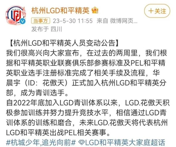 电竞界一直是年轻人追逐梦想的热门领域,竞争激烈且技术要求极高。华晨宇一步一个脚印: 2020年底成为和平精英游戏品牌代言人的他操作不熟练,翻窗都不太能跳出去,但到2021年5月他已熟悉三指操作,并在明星双排表演赛成功吃鸡。掌握五指全陀操作后,2021年12月在火星演唱会水友赛中完成单场17杀并成功吃鸡,次年8月活动中已能跟职业选手对枪。2022年底正规注册加入LGD青训体系开始参加训练,次年4月跟职业选手组队与其他职业选手歼灭对战已能拿下单局MVP。而在2023年5月底,华晨宇(id:花傲天)通过考核正式加入LGD战队成为PEL职业选手。