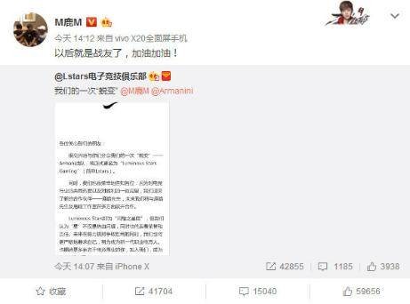 突然很好奇,两个人会不会来一次对决,说不定鹿晗为了支持兄弟,带上自己的战队在陈赫首播当天与陈赫的SnakeTC来一场表演赛,到时候,你会支持谁呢?