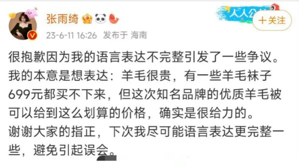 张雨绮699元袜子言论引争议!豪奢态度惹众怒,网友质疑明星言行李佳琦道歉言论,张雨绮、李湘、向太等明星的金钱欲望引发争议