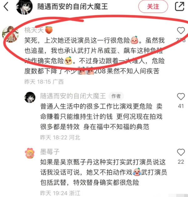 还有人对张雨绮的道歉表示怀疑,提及她之前的言论,称她曾表示演员是一个高危行业,承担吊威亚和武打等危险戏份,而一天的收入相当于普通人一辈子拼搏的结果,对此有何抱怨之余呢?